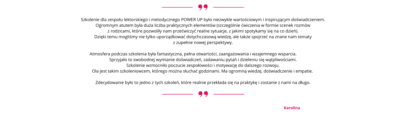 POWER-UP to intensywne, w pełni praktyczne warsztaty stworzone przez Olę Komada - metodyczkę, trenerkę i twórczynię metod Edu Bears - w oparciu o ponad 20 lat doświadczenia w pracy z nauczycielami, lektorami i zespołami edukacyjnymi.